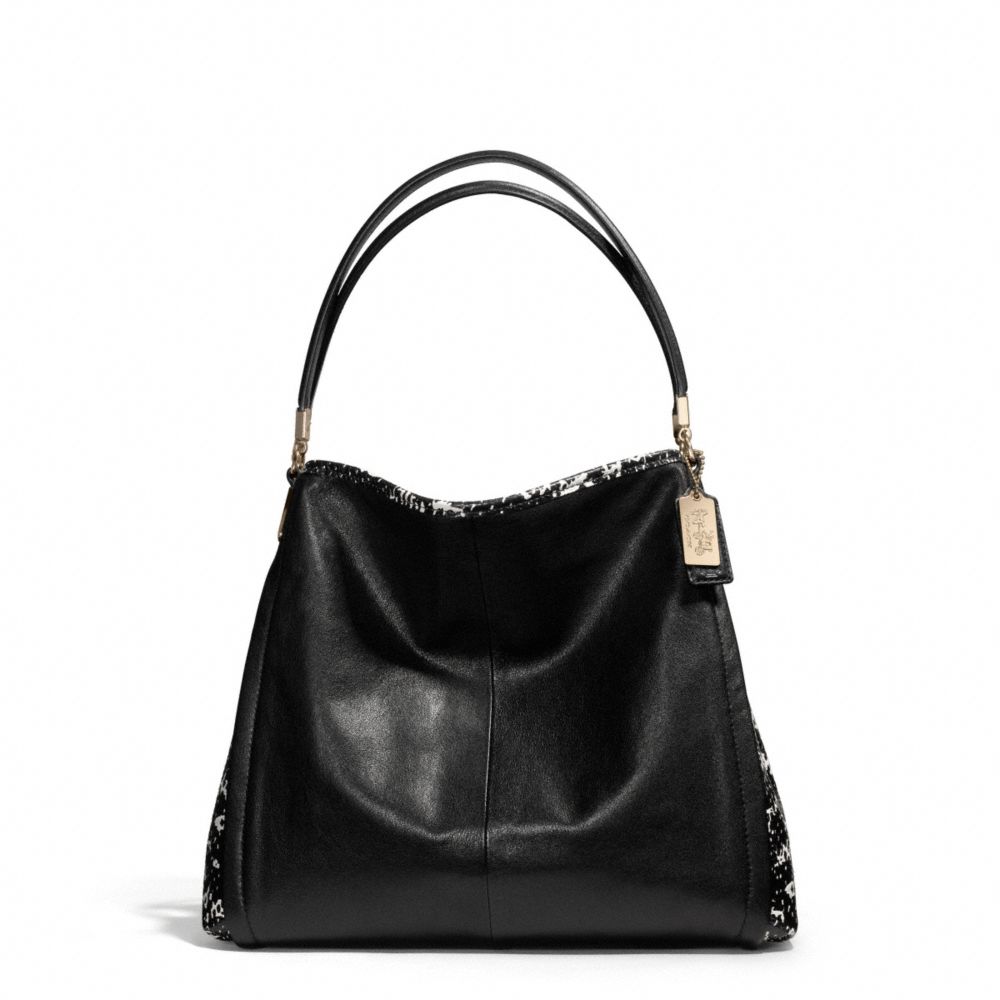 COACH F28604 - MADISON TWO TONE PYTHON EMBOSSED LEATHER SMALL PHOEBE - LIGHT GOLD/BLACK (click the link before for more detail)
