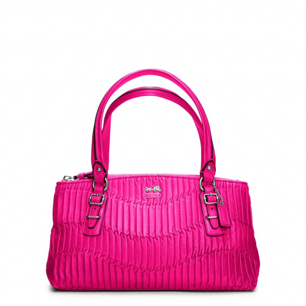 COACH F45928 - MADISON GATHERED LEATHER SMALL BAG - SILVER/HOT PINK (click the link before for more detail)